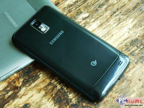 三星I929在机身背部设计上更是与国际版GALAXY SII大不相同,平整的后盖少了一丝时尚多了一份沉稳,而中国电信天翼LOGO的出现则说明了它的身份。