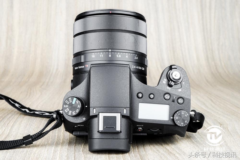 相比其他系列的黑卡相机以及阿尔法系列相机,索尼黑卡RX10 IV的顶部设计较为独特。沿着镜头中心线的闪光灯以及取景器设计使佳能、尼康用户操作倍感亲切,左侧拍摄模式的拨盘以及右侧操作界面以及数显屏使这台相机在索尼家族中也充满了个性。