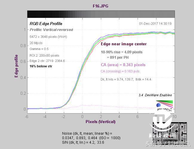 之后,小编还使用F16光圈进行拍摄并使用Imatest进行跑分得到了如下结果: