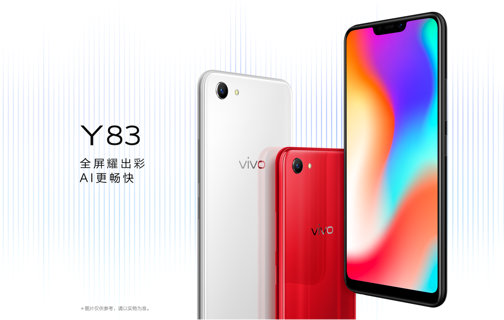 vivo Y83的宣传语为“全屏耀出彩,AI更畅快”,可以看出这款中端新机以全面屏和AI为主打卖点。事实上该机最大的亮点就是采用了一块和X21相差无几的异形全面屏,并且全球首发搭载联发科于5月24日发布的新款中端芯片Helio P22。