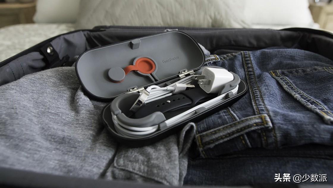 有了 Apple Watch 以后,大多数用户都不会仅有一只表带。所以这个时候表带的收纳问题就是一个关键。尤其是想要出差的时候更是如此,所以我自己使用的是一款综合收纳包。在这个小盒子里你可以很好地放置自己的充电线,充电头以外你还可以收纳不同条的表带。这样可以出差在外使用更多的 Apple Watch 表带。
