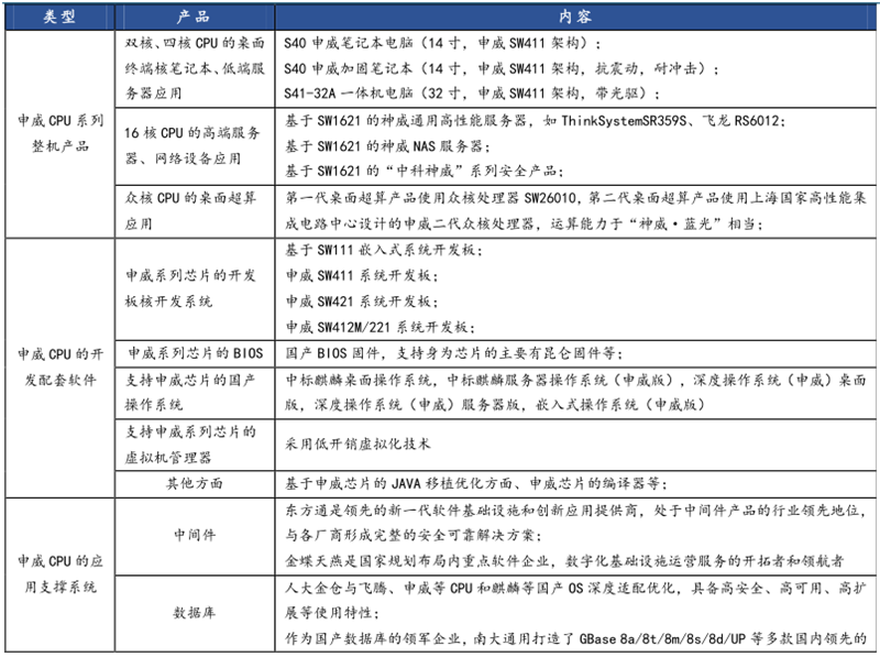 经过长期稳定的研发,基于系列申威芯片的各种产品也逐渐增多,在保障特种领域应用和国家战略任务的前提下,随着其产品技术的日益成熟,其生态也不断完善。