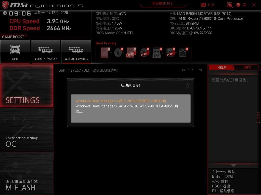 演示平台2块硬盘都带UEFI的WIN10系统,所以不设置的话会走默认启动,需要选择的可以在底部的UEFI硬盘BBS优先权里单独选择到底要那块盘引导启动即可。