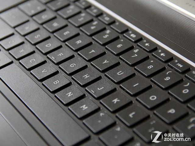 新Pavilion 14的键盘键帽体积虽然不算大,键程稍短,好在按键很有弹性,整体的敲击感比较到位。此外,键帽的表面采用了磨砂涂层,因此手指有很好的触感,如果键帽表面能够有一定的下凹弧度,以达到贴合手指肚的人体工程学设计的话,相信整体的使用感受会更加出色。