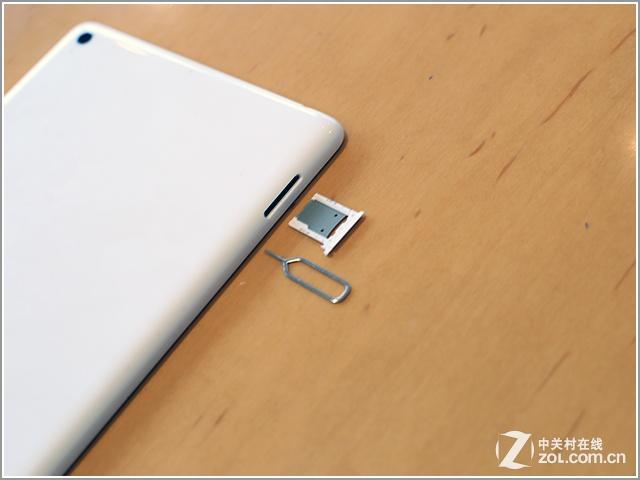 TF卡卡槽位于机身的左侧,为了保证机身的一体化设计不被破坏,TF卡是放在一个需要用卡针才能取出的卡槽里。经过我们的实际测试发现,虽然TF卡槽是类似于iPhone的设计,但是当我们用卡针捅那个洞的时候并没有出现弹出式的效果,卡槽只是露出了一小部分,后来我们只能用手将剩下的部分抠出来,比较尴尬。