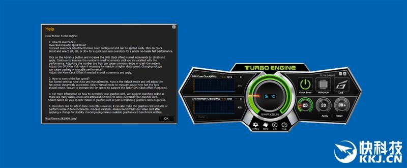 有了硬实力,还得能够彻底挖掘发挥出来才是王道。铭瑄也特别给出了一款配套软件“GTX1060 JetStream RGB炫酷LED信仰灯调节软件”,不过虽然名字如此,但它的功能可不止是玩玩灯效,而是一款综合性的显卡管理软件,英文名Turbo Engine。