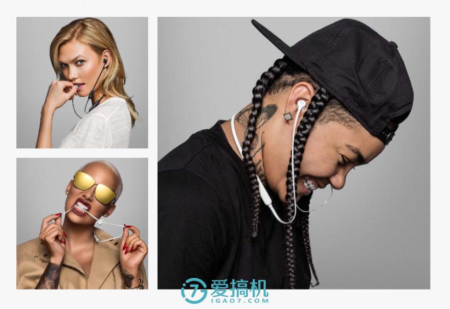 与 AirPods 不同,BeatsX 的造型设计与现在大多数的颈带式无线耳机相似,左侧部分除去 beats 的 logo 外还有 lightning 的数据接口,用于为 BeatsX 充电。