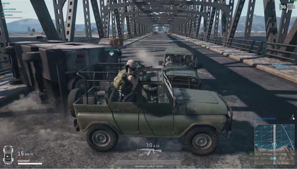 在1080p、低画质设定下的测试中,AMD锐龙5 2400G帧率大多在28~35fps间波动,基本能流畅运行。在战斗中,没有由于硬件的性能不足影响活动,我们也能在游戏中开启倍镜,对敌人精确打击。