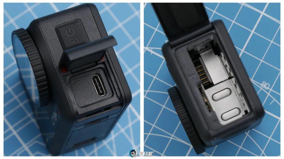 熟悉的布局:左盖USB口,右盖电池与内存卡槽,左侧模式/电源键,顶上快门,底下是磁吸卡扣。