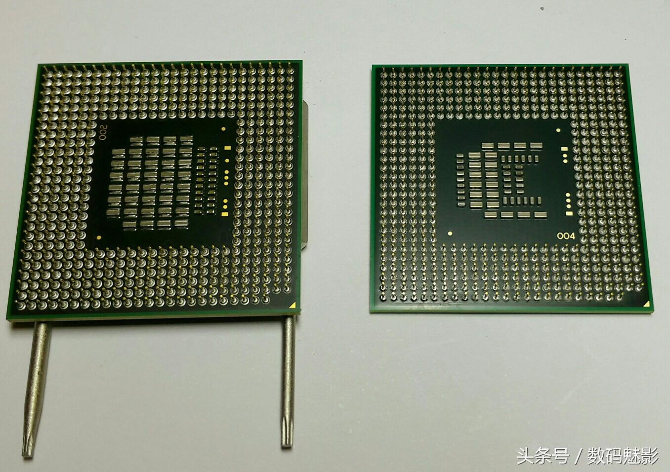 先拿T7700试试再说,换下来的T6400先和T7700比较一下,多了一倍的二级缓存,T7700的核心面积要大些。