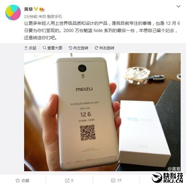 魅蓝X、魅族Pro 6 Plus刚刚不发,魅族又在马不停蹄的准备下一场发布会了。12月6日,魅族将正式发布魅蓝Note 5。按照魅族老大黄章的话说,该机是一款“世界级品质和设计的产品”。