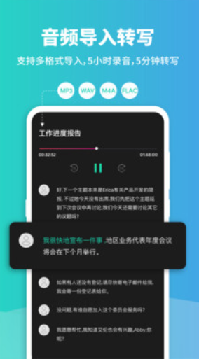 可实时语音转换,边说边转换,进行声音导入转换,语音智能识别,不再需要手动打字整理音频内容了。
