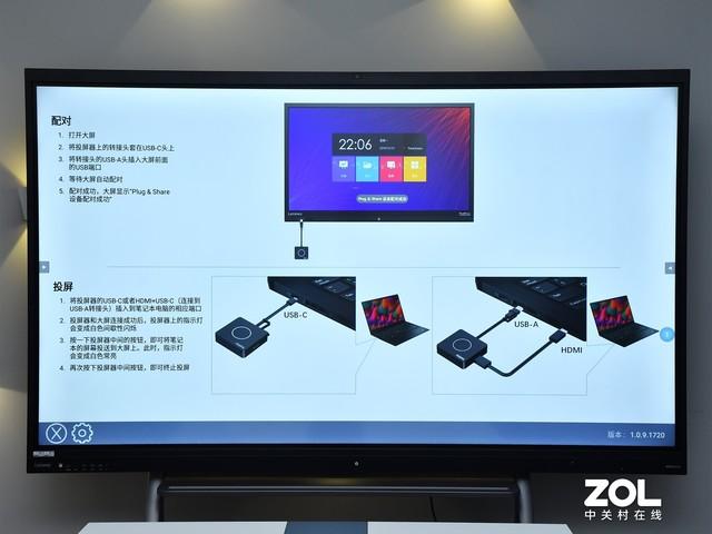 联想thinkplus大智慧屏随机附赠无线投屏器,它的使用方法可以用“一劳永逸”来形容。先将投屏器与大屏进行配对,之后就可以自由投屏了。
