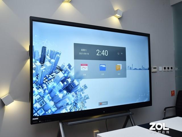 本次送测产品采用了86英寸防眩光、高色域大屏设计,支持红外触控,并且采用了窄边框设计,另外还可以根据会议室面积选择75英寸和65英寸规格。其分辨率达到了4K,峰值亮度达到350cd/m2,配合86英寸屏幕可以带来非常细腻的画面效果呈现。