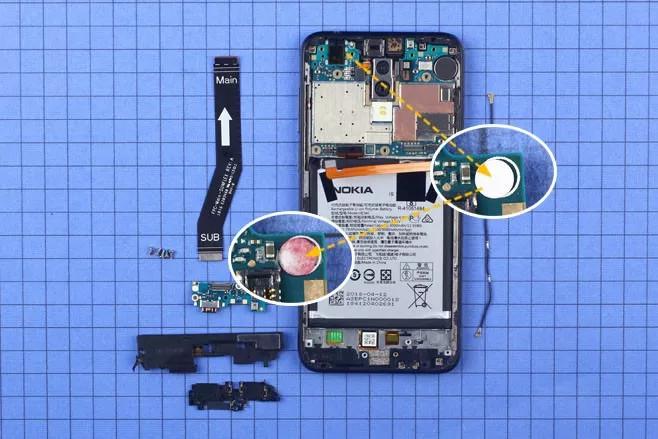 整机一共采用了 14 颗六角螺丝固定,但对于排线、连接线等的处理线方式稍嫌有点随意,这使得拆解的过程需要加倍小心。同时,由于诺基亚 X6 内部采用了大量如今已经很少见的胶纸和拆卸后不可复原的易拉胶条等作为固定,加上侧键拆解时边框也发生了变形。由此可见,诺基亚 X6 的维修难度也是比较偏高。