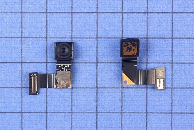 作为一台千元机,诺基亚 X6 在摄像头方面并没有做太多的特别设计, 1600 万像素 + 500 万像素的后置双摄以及前置的 1600 万像素摄像头在手机上部中间自下而上排布,为此,主板设计也因应摄像头的排布而在中间至上方位置“镂空”。