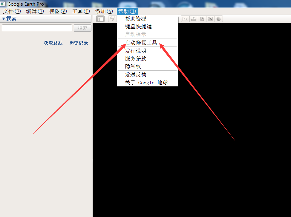 在上方菜单栏点击“帮助”然后选择“启动修复工具” 同时按住键盘ctrl+shit+esc启动电脑的任务管理器"在“进程”中找到googleearth.exe"然后点击结束进程
