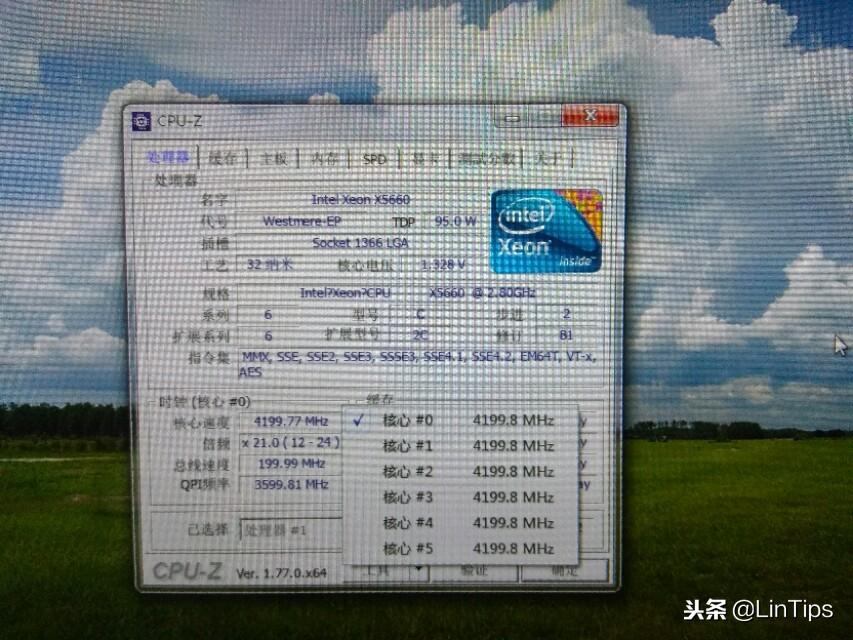在X5660到手之前,用卖家送的E5606测试时可以正常使用,然后把之前用的推土机拆了,把显卡,内存,硬盘的直接搬过来(我懒,没有重装系统),由于5660还没到手,只能用着亮机U顶着先,还暴力的直接拉外频至220MHz,超到3.5GHz,性能跟之前超频到4.4GHz的推土机差不多,cinebench R15跑分基本持平。