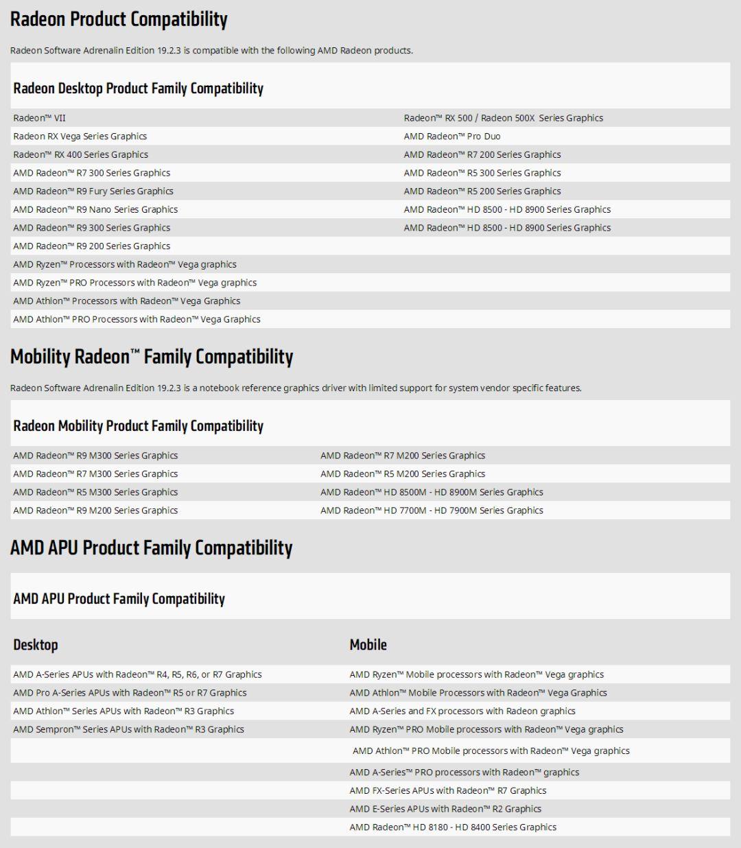 现在2月份行将结束,AMD顺利兑现了承诺,最新发布的Radeon Software Adrenalin 2019 Edition 19.2.3驱动中已经加入了对AMD全线移动平台的支持。