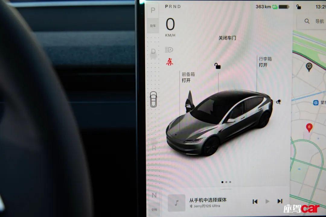 在一番静态体验之后,我们驾驶着新车行驶在路上。同时我也向旁边的工作人员抛出了第一个问题:“您觉得新款车型最大的改变是什么?”他的回答是:“更舒适、更智能、续航超长。”与过去不同的是,特斯拉把与驾控有关“更舒适”放在了第一位,而不是智能或者续航。我们始终认为车辆的革新,首先是提升车辆的行驶品质,而这一点我从新车的操控、底盘调校,以及乘坐舒适性等方面都感受到了相比老款的提升。先说操控,方向盘的转向质感比过去更细腻,但指向性依旧精准。底盘的反馈比过去调校得更加舒适,虽然悬架结构没有改变,但弹簧的调节要比此前更加有韧性。座椅的填充物也得到了升级,不仅乘坐更舒适,包裹感也变得更好。如果抛开动力单元是电力驱动,我很长一段时间认为它的驾控水准和宝马3系非常接近,这一点目前许多新能源汽车都很难做到。另外,特斯拉对于车重的控制一直有自己的标准,我们试驾的后轮驱动版的整备质量为1760千克,相比其他车身尺寸相近的新能源车动辄超过2吨的车重,它更轻的车身显然对驾控起到了关键的作用。动力方面,新车采用一个后置单电机,最大功率194千瓦,最大扭矩340牛·米,百公里加速时间为6.1秒,与前款完全一致。当然,它也有双电机四驱版本,最大功率331千瓦,最大扭矩559牛·米。有人会说全新特斯拉Model 3在动力方面并没有提升,但试想一下,如果您只是驾驶它日常代步,这样的动力储备早已超过了实际需求。此外,我对于新车动力踏板对于动力输出控制的线性程度提出表扬,它非常接近燃油车,比市面上大部分产品都要接近,这是非常主观的感受,但它就是尽可能做到降低车内其他乘客的眩晕感,提升舒适性。另外一点提升舒适性的是特斯拉联合米其林开发了特定的轮胎,不仅提升舒适性,还能增加续航里程。