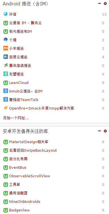 这里有容联云通讯、bmob支付等安卓社会化分享,还有Font-Awesome字体图标、sublime浏览器前缀插件、bootstrap-filestyle等前端相关的知识,还有国外个人博客等。