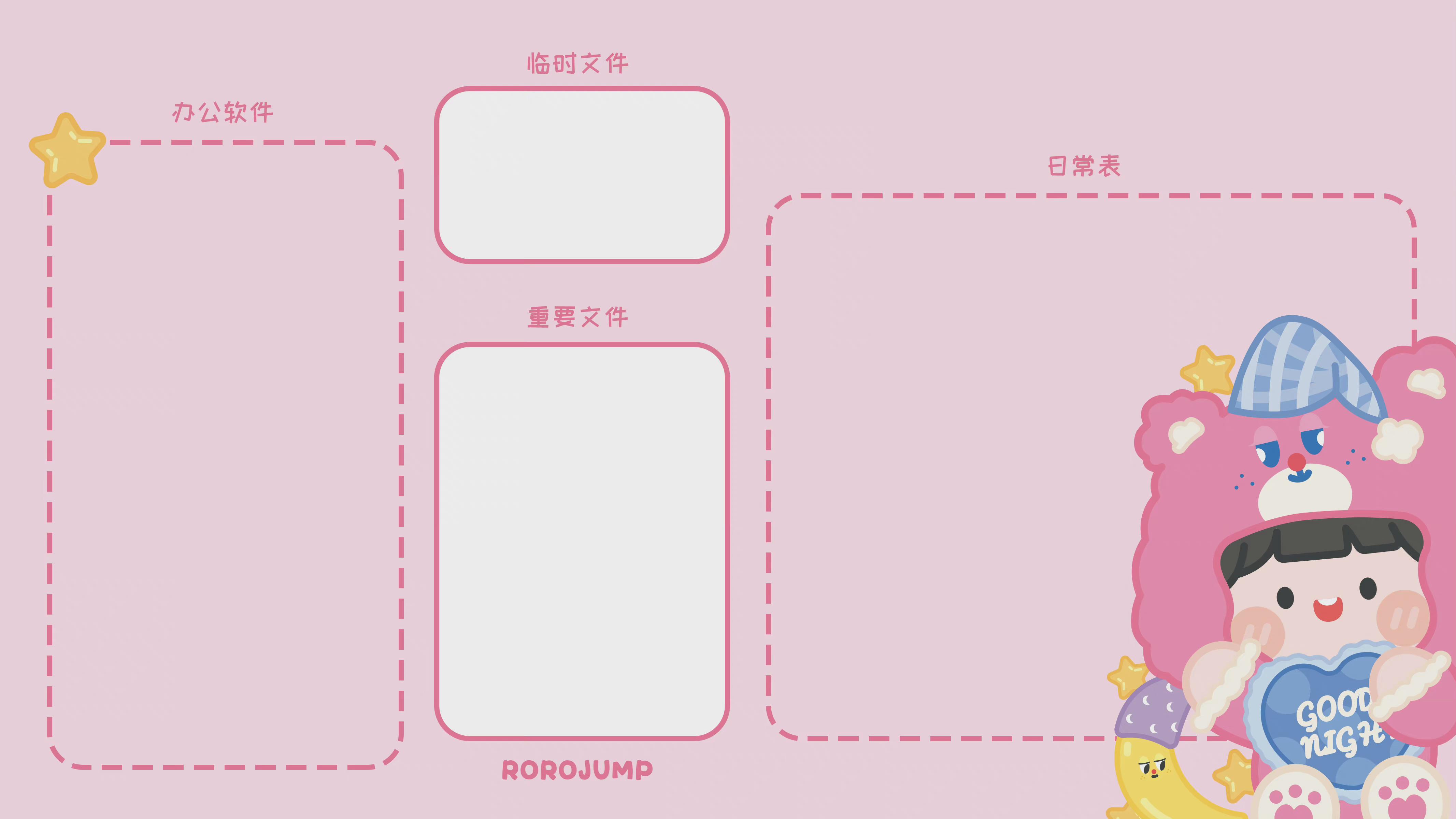 超可爱治愈的卡通动漫电脑桌面分区壁纸。
