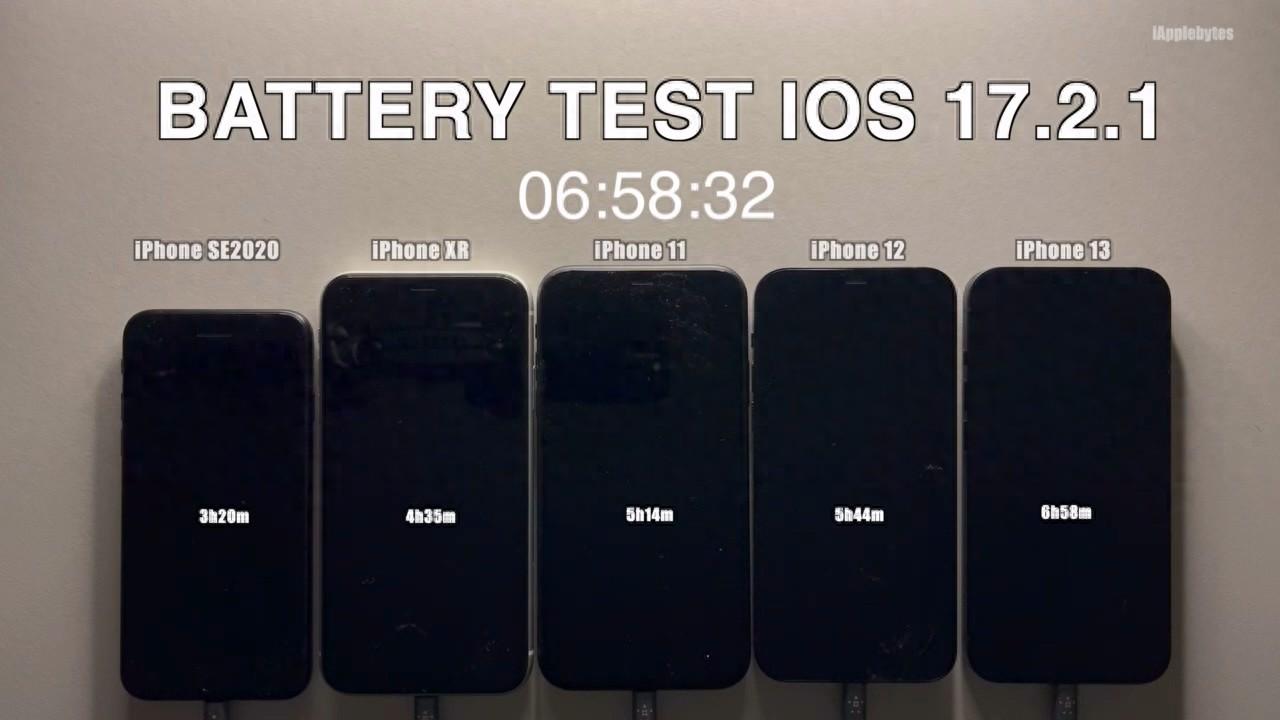 IT之家 12 月 27 日消息,苹果于 12 月 20 日向 iPhone 用户推送了 iOS 17.2.1 更新(内部版本号:21C66),重点修复某些场景下耗电过快问题。那么本次修复带来了多大的续航提升?YouTube 频道 iAppleBytes 日前发布视频,通过实测进行了对比。