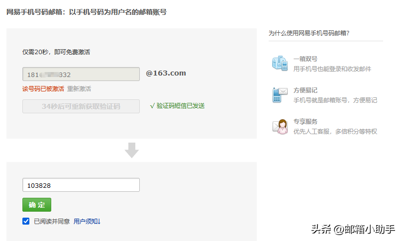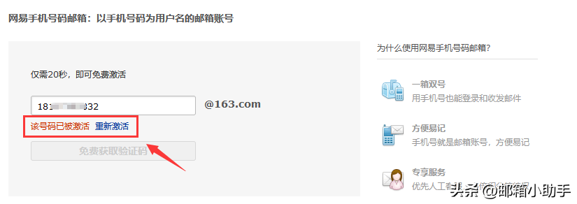 如何激活手机号码邮箱,激活后拥有“手机号码@163.com”账号,知道手机号就能发邮件