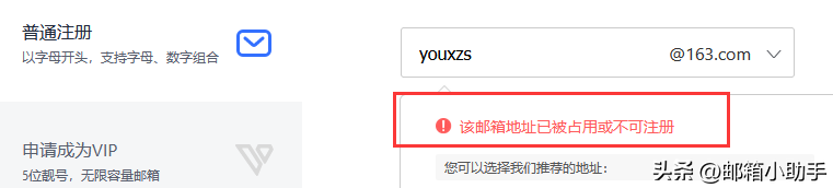 (1)提示:该邮箱地址已被占用或不可注册,则需要重新定义邮箱名(如下图所示);