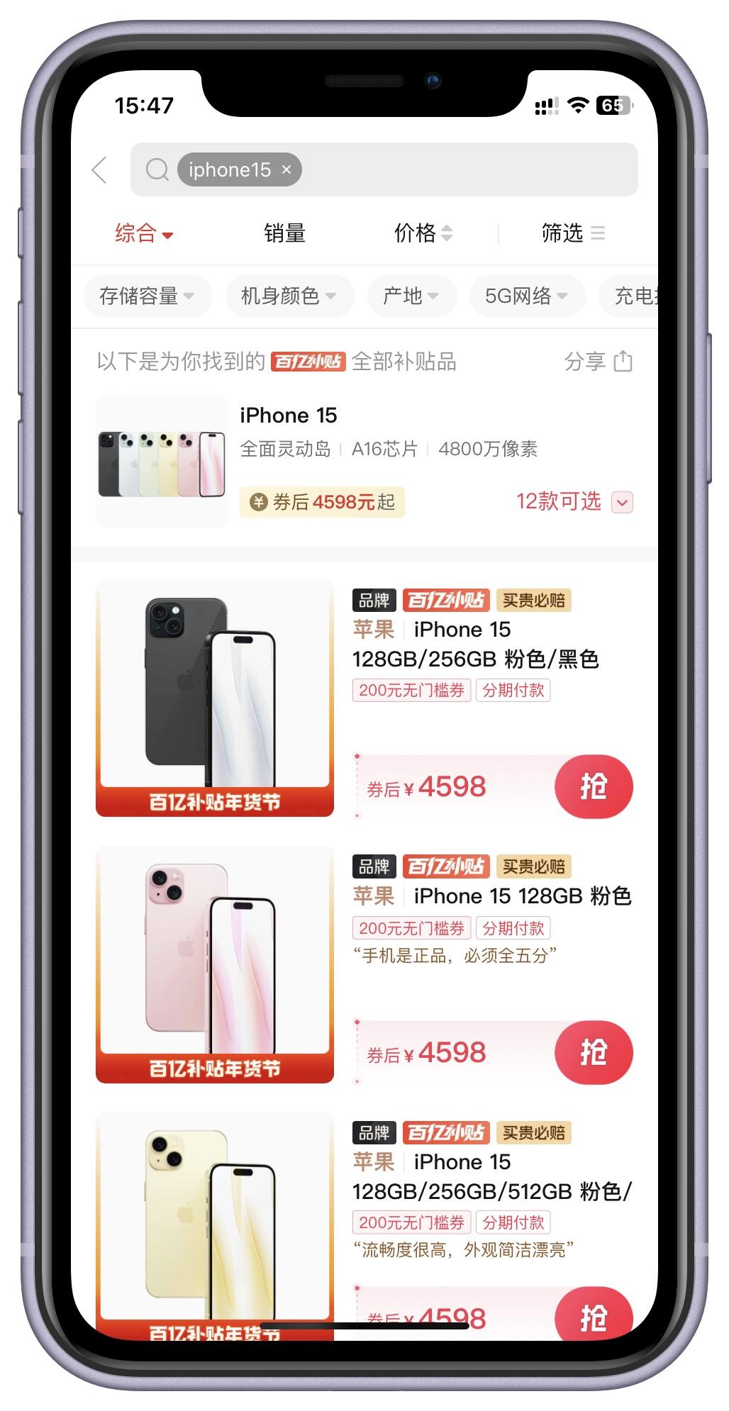 但整体来看,苹果官方的优惠力度,比较一般。以iPhone 15为例,如果丐版能直降500元,到手价就是5499元。而早在2023年10月底,国内电商平台上iPhone 15系列的降幅,就远不止这么点。当时,某百亿补贴平台上,丐版iPhone 15只要5198元,优惠力度超过了800元;现在,它甚至只要4598元,降幅达到了1400元。也就是说,苹果官方大张旗鼓宣传的500元优惠,在第三方电商平台的促销面前根本不够看。