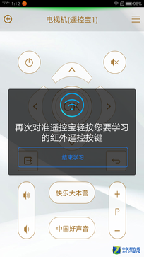 GeekLink遥控宝3S开启软件界面即可看到电视机的遥控器模拟界面,根据界面的按钮逐一学习红外码即可,学习过程并不复杂,就是重复性工作量较大。机顶盒、网络盒子同样如此!