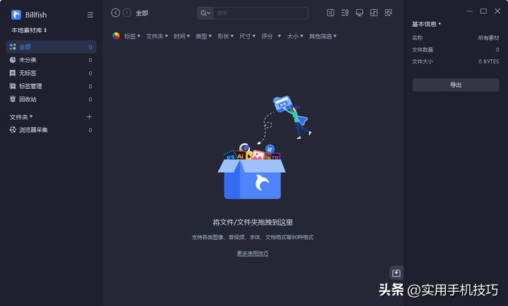 Billfish是一个免费的素材管理工具,它的所有功能是完全免费的,可以帮我们高效的整理电脑的各类素材,支持PNG、JPG、PSD、AI、GIF、SVG、EPS等各种素材格式。