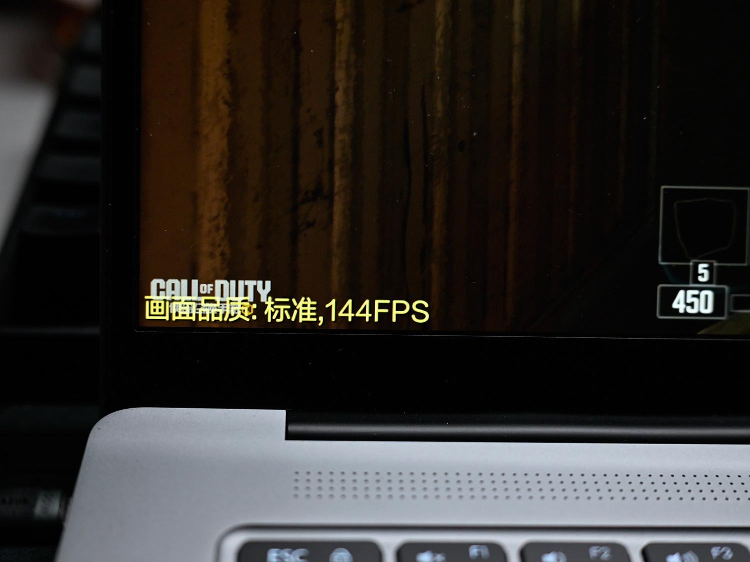 惊喜的是,144帧也是支持的,并且也比较稳定。当然,画质还是标准,没有调到极致。此时,两个风扇已经狂转了,这应该也是集显本的体验极限了。