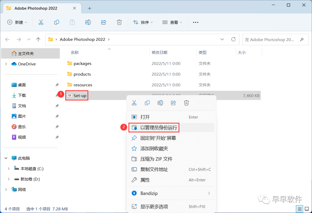 1、下载Adobe Photoshop 2022软件安装包到电脑上,右键选择【解压到Adobe Photoshop 2022\】