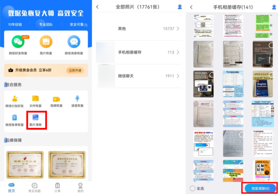 步骤仅需要三步:选择图片清除——等待扫描完成——预览查看并选择是否恢复
