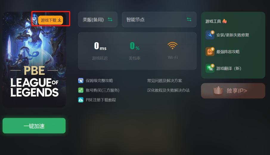 2. 下载PBE客户端: 在奇游加速工具中,找到美测服游戏下载选项。点击该选项,选择下载路径,即可获取PBE客户端。