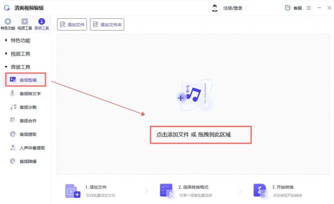 同时还支持音频剪辑、音频降噪等功能,操作简单易上手!