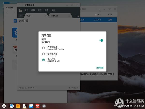 其次是默认设置的问题,有一些系统初始设置也十分微妙。比如输入法。最初我使用键盘打字的时候第一反应就是反人类,为啥?因为选字居然不能用数字键选,非得用方向键……%#@&……什么鬼。怒下了另一个输入法后,我发现原来这里存在隐藏技巧,在切换输入法时把显示软键盘选项去掉世界就变美好了,变成了正常桌面输入时的感觉了……虽然好像解锁了什么不得了的新技能,可以我宁愿有人一早就告诉我或者在插上外置键盘时自动切换掉啊……
