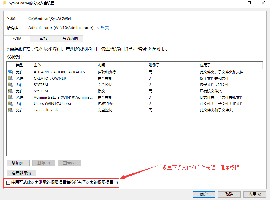 3、勾选下图红圈所示项目,强制下级继承我们更改后的权限
