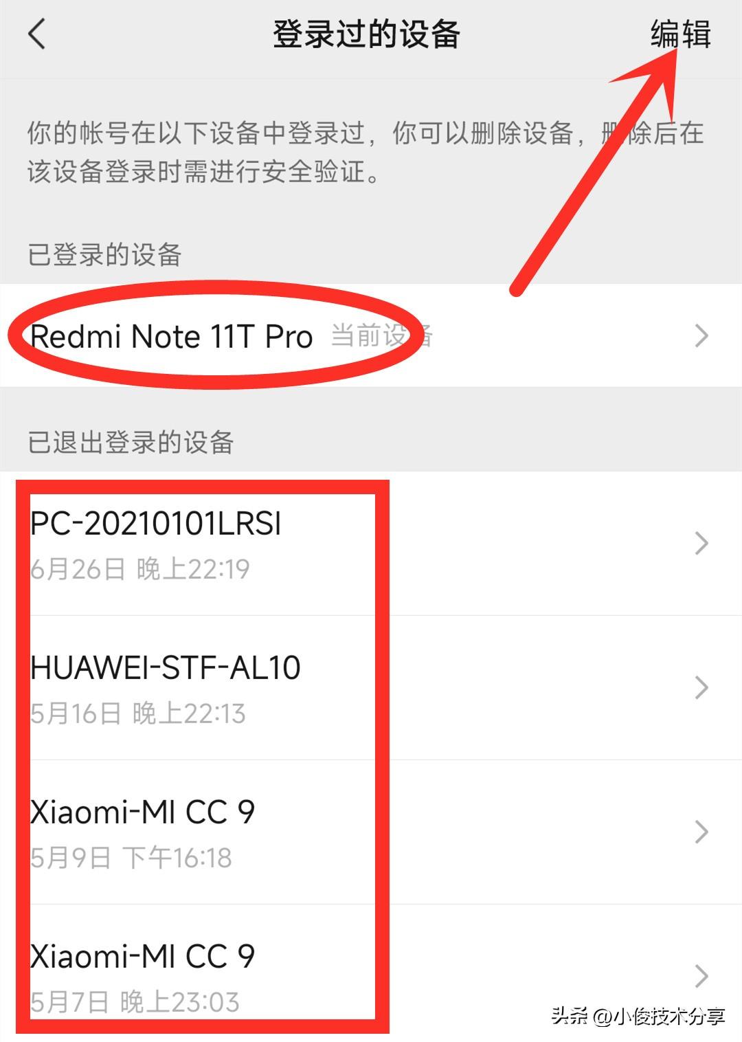 我们此时打开手机设置,然后找到关于手机或者我的设备,在我的设备里边,就可以看到当前的手机型号了,比如说像我现在的手机型号是Note 11T Pro,那么我就在登录设备里把这个型号保留,其它都删掉就可以了,删掉这些不是自己的手机设备之后啊,就可以避免很多风险了,而且当这些设备想再次登录我们的微信时,我们这边就会出现提醒,必须经过我们同意才能登录并且使用我们的微信了,这样呢,我们的微信就安全了!