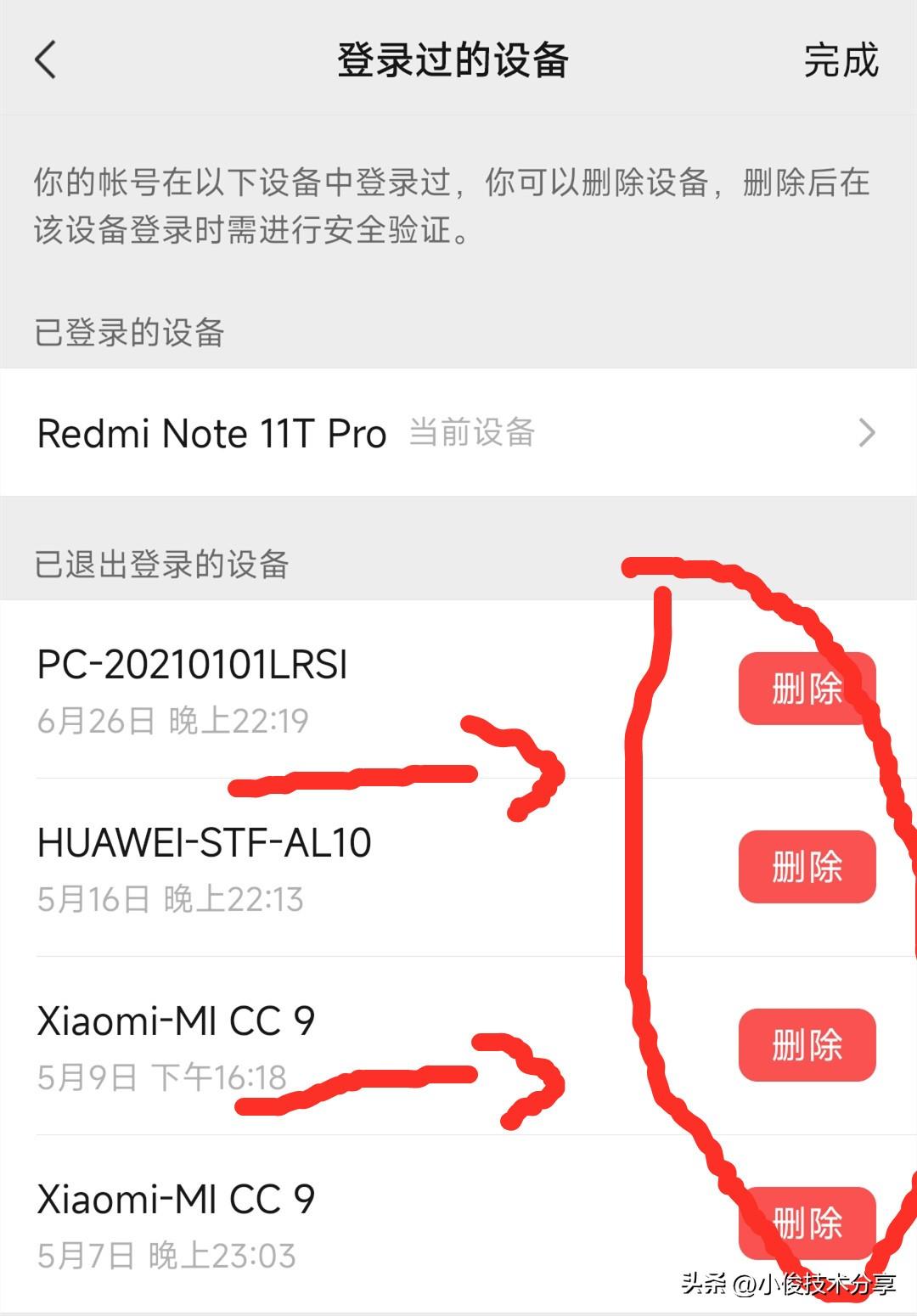 那么很多朋友又会说,我怎样才能知道哪个是自己的手机型号,万一删错了,这样不就会导致无法正常登录使用了吗?其实这点大家也不要担心,因为这些设备即使删错了,我们只要验证我们的密码,还是可以登录使用的,但是为了安全起见,或者不想重新登录,那我们只要找到自己的手机型号,把它保留就可以了,那怎么才能知道自己的手机型号呢?