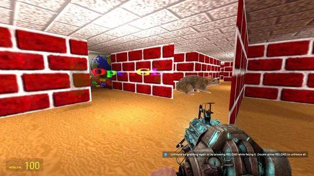 在这里,你可以在迷宫中自由移动感受墙壁的碰撞体积,还有更清晰的纸片老鼠和墙壁以及细心加上的OpenGL的logo墙面。除此之外,手柄控制、暂停等游戏的基本功能也是一应俱全。
