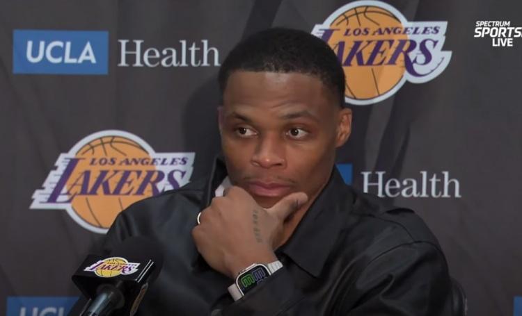 直播吧11月7日讯 今天凌晨进行的一场常规赛,湖人100比114不敌骑士。赛后威少接受了媒体的采访。