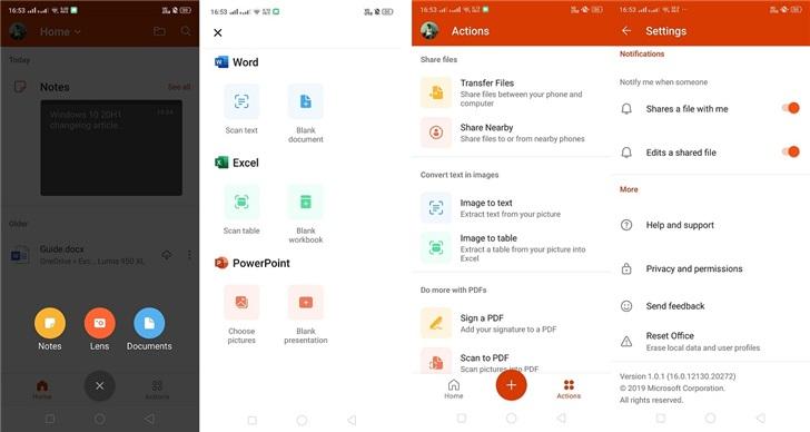 微软正在维护适用于Android的Word、Excel、PowerPoint、Outlook和OneNote应用程序的独立版本。现在微软重新为Android手机推出了三合一的Office应用程序,一个程序包含了Word、Excel和PowerPoint。