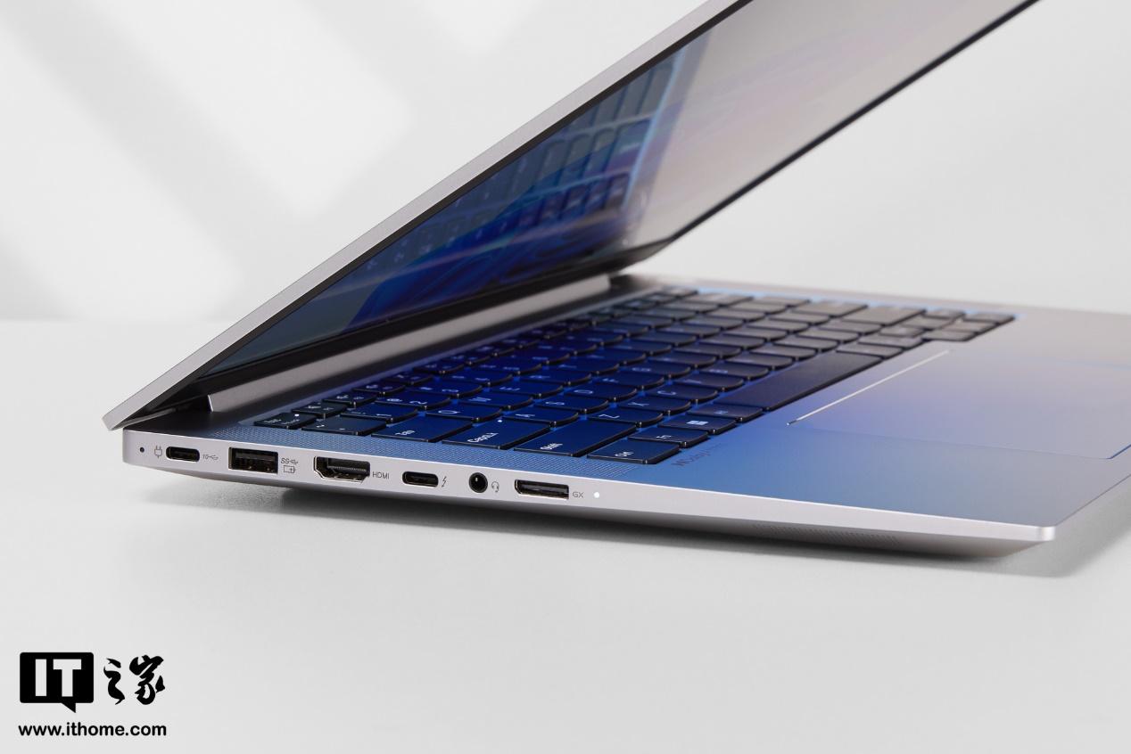 接口方面,联想昭阳 X7 AI 高能本采用了 3A2C 的数据口组合,其中一个 A 口为隐藏式 2.4G 接收器收纳口,HDMI、RJ45 网口和 Micro SD 卡槽也都有,甚至还加入了一个 GX OCulink 显卡扩展坞接口,真正做到了多且全。