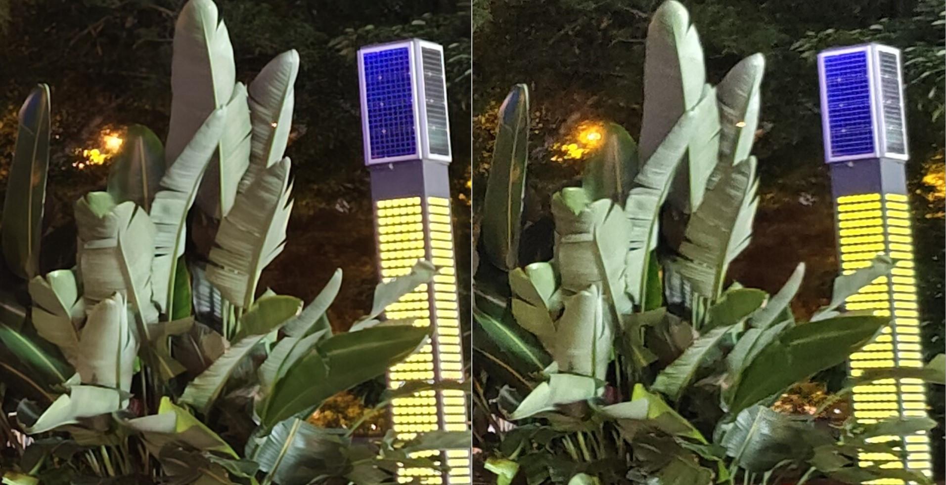 这组夜景两款手机的整体曝光和宽容度非常接近,不过细节和纯净度是 iQOO 5 Pro 占优。