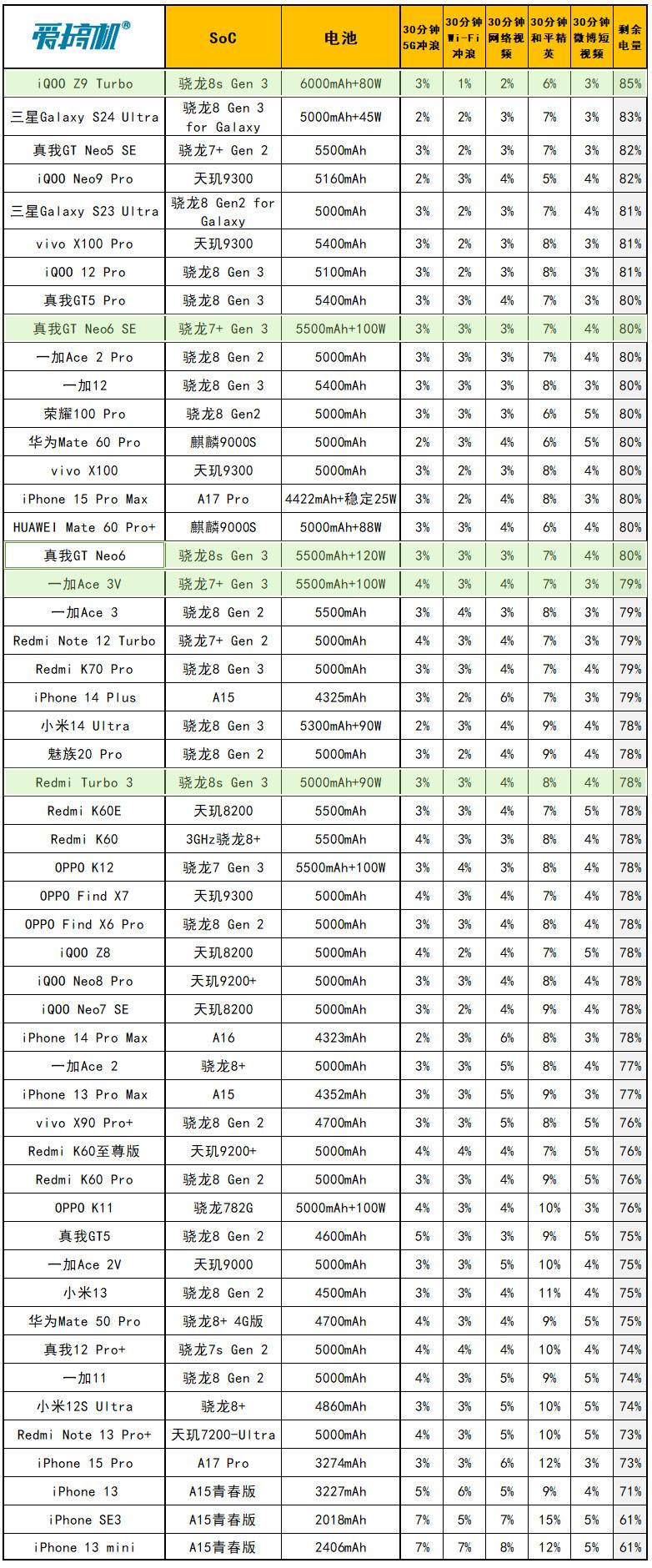 骁龙8s Gen 3的真我GT Neo6,续航成绩和骁龙7+ Gen 3的真我GT Neo6 SE,不能说分别很大,只能说一模一样。