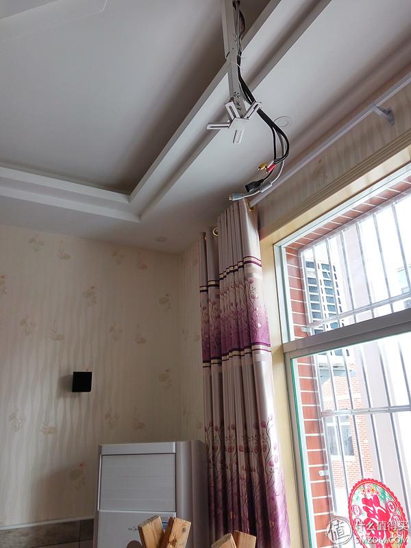 在2015年6月随着家里装修完成,全套设备也安装好了。事后证明对当初选购的各个器材长宽、尺寸、规格、类型等还算符合安装要求。可惜因人为、某些无可奈何的原因,安装还是出了问题:幕布离背景墙太近,幕布降下来差一点干涉到电视;环绕离地面距离达2米(可简单改动往下挪,但懒得动了),所以留下了一些本可避免的遗憾。