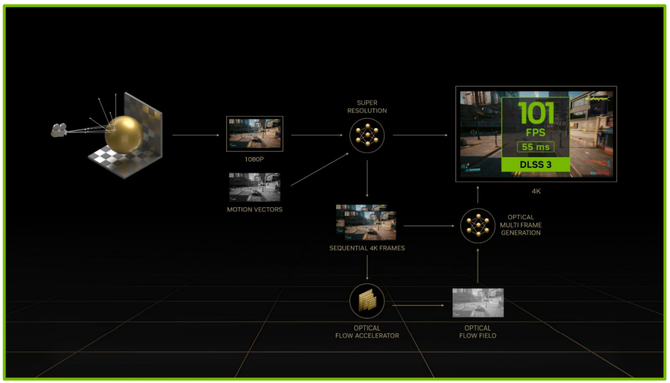 DLSS 3技术相对于DLSS 2提升明显,如果DLSS 2是通过计算出当前画面的部分像素进行,那么DLSS 3则是通过强大的算力同时将下一帧的画面也同时计算出来,这样的性能提升放在实际的游戏当中是非常明显的,根据官方给出的说法,全新的DLSS 3能够带来2-4倍的游戏性能提升。