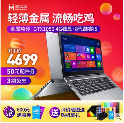 大麦6S是麦本本2018年首发的新品,无论是配置性能还是外部做工,都引领了当下中端游戏本的潮流。配置上,搭载了英特尔第8代酷睿i5-8250U处理器和主流显卡GTX1050,性能非常出色,各种游戏杰作都能轻松畅玩,而且还内置了双风扇双铜管的散热系统,让你长时间游戏也能流畅运行不卡顿。仅有1.8Kg的重量,外出携带也是极其方便。